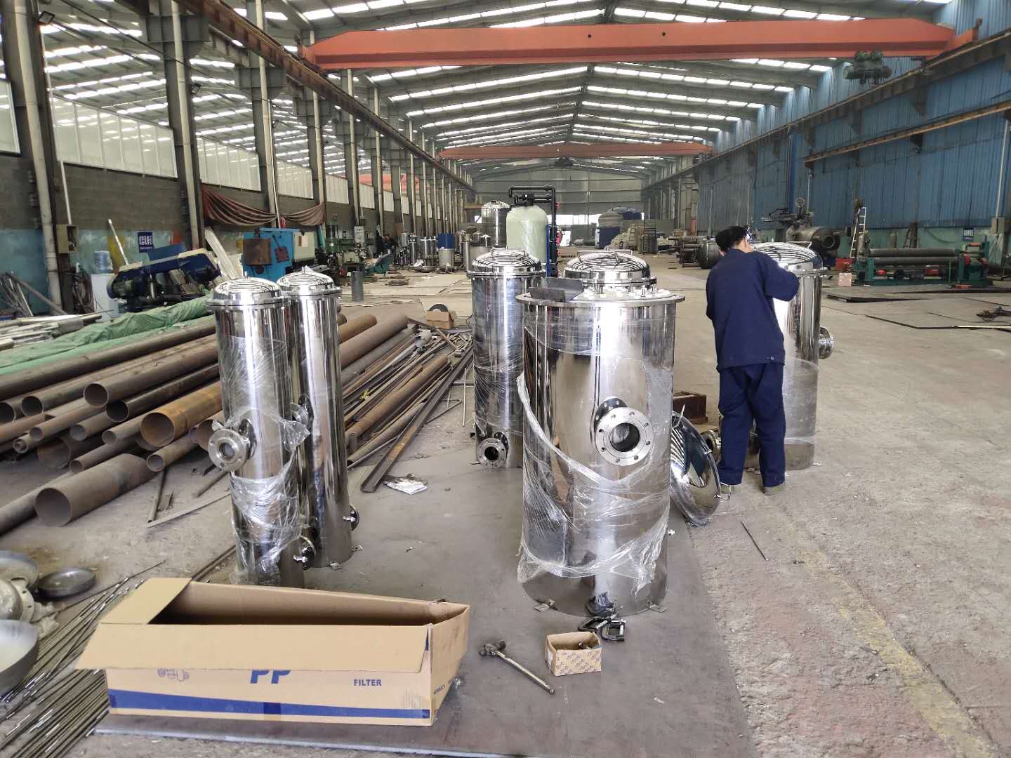 精密過濾器一般用在石英砂過濾器,活性炭過濾器,離子交換器后面或反滲透,鈉濾,超濾前置過濾,一方面是進一步處理水中細的雜質,另一方面防止前道工序里破碎石英砂、活性炭,離子交換通過布水器留到下道工序。