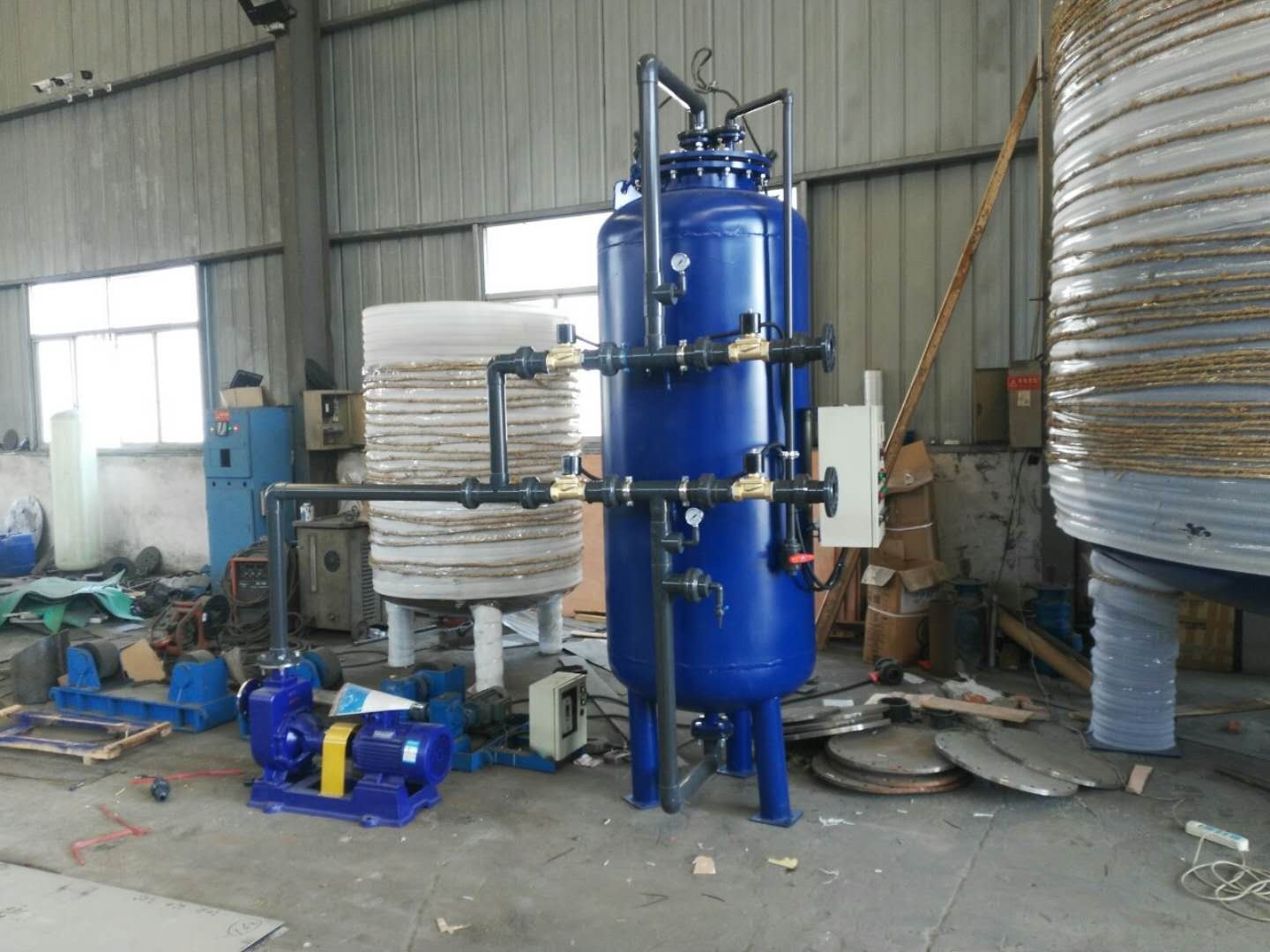 在以前過(guò)濾器運(yùn)行中,也會(huì)出現(xiàn)由于水質(zhì)沒(méi)有沉淀好,導(dǎo)致出水水質(zhì)比較差,我們創(chuàng)新的采用,將水打入到過(guò)濾器,然后在過(guò)濾器沉淀1個(gè)小時(shí)候,因?yàn)檫^(guò)濾器有石英砂濾料,效果很好,出水清澈,有點(diǎn)像斜板沉淀池效果,石英砂就像斜板,增加沉淀效果。